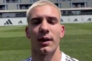 马斯坦图奥诺:“你好,皇马球迷们,你们好吗?我是马斯坦图奥诺,感谢你们的欢迎和对我的关爱。我已经迫不及待想在伯纳乌见到你们,希望很快就能实现。给你们一个大大的拥抱,皇马加油!”