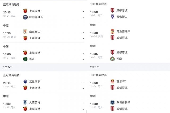 体育资讯10月17日讯 中超还剩最后3轮,海港、蓉城、申花剩余赛程如下。